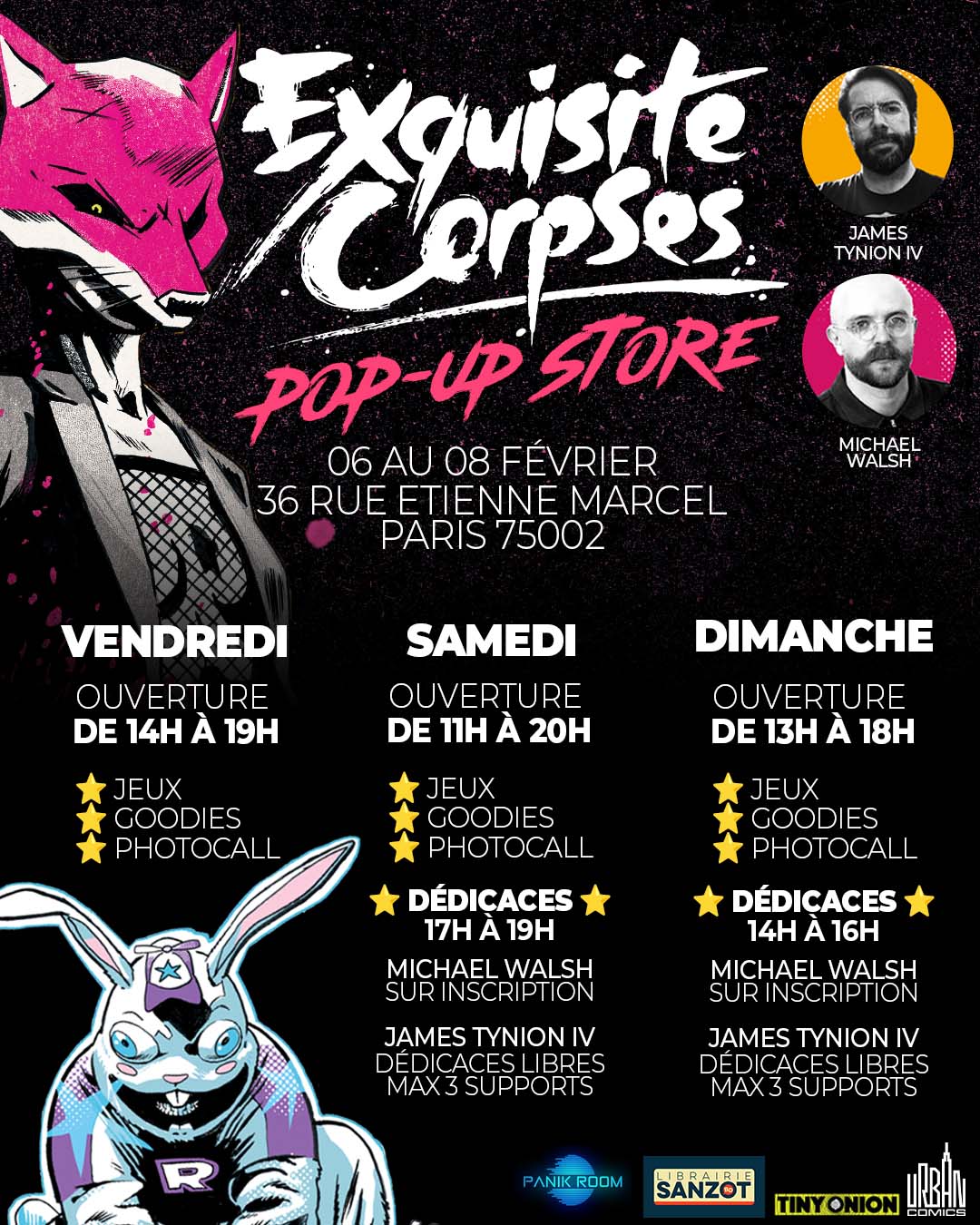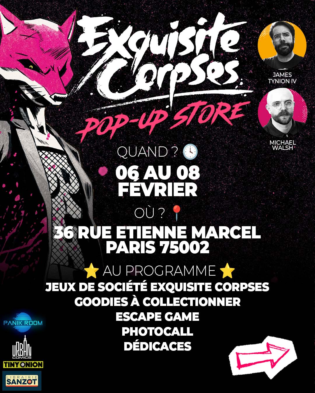 Nous sommes heureux de vous annoncer la venue de James Tynion IV et Michael Walsh pour le lancement de la série Exquisite Corpses ! Les auteurs nous font l’honneur de passer par la France pour quelques dates de dédicaces et de rencontres à l’occasion de la sortie de leur nouvelle série : EXQUISITE CORPSES !