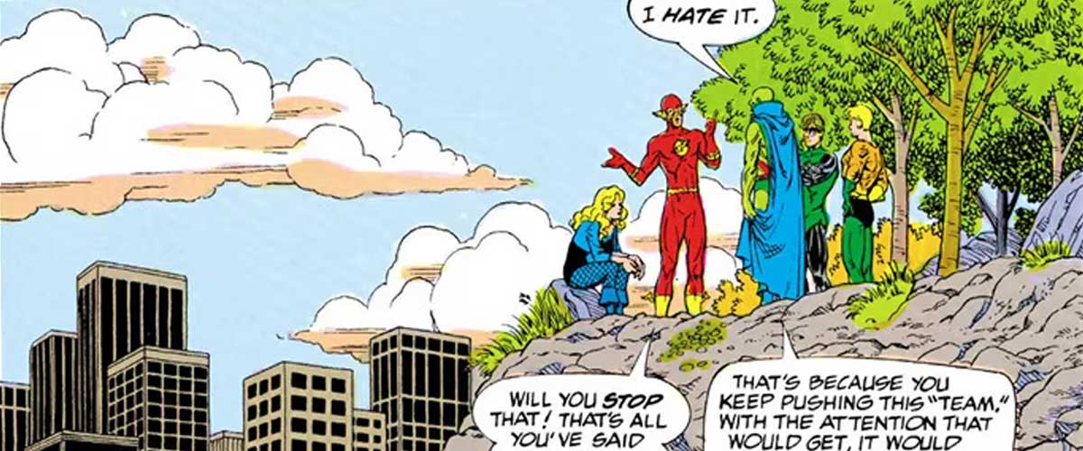 Au départ, les héros hésitaient à former une équipe permanente, invoquant leurs différences de personnalité et leurs responsabilités respectives, mais ils finirent par céder en réalisant que le monde avait besoin d’eux. Une fois de plus, Flash participa au choix du nom du groupe, suggérant “Super Seven” avant que l’équipe ne se décide finalement pour “Justice League”.